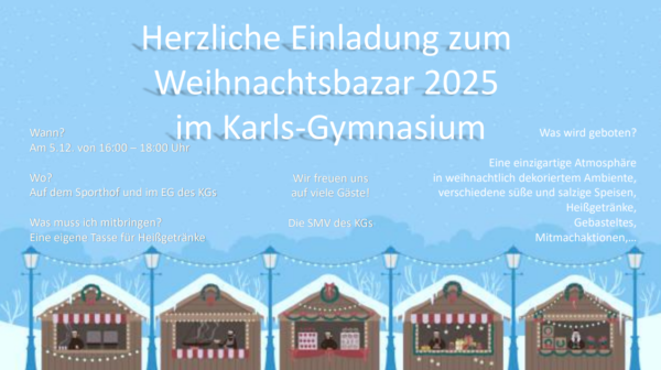 Am Freitag den 5.12.25 sind alle recht herzlich eingeladen zur Karls Drama Group. Also, falls ihr Zeit habt, kommt vorbei! Es gibt zwei Vorstellungen im Musiksaal, um 15:30 Uhr und um 17:45 Uhr!